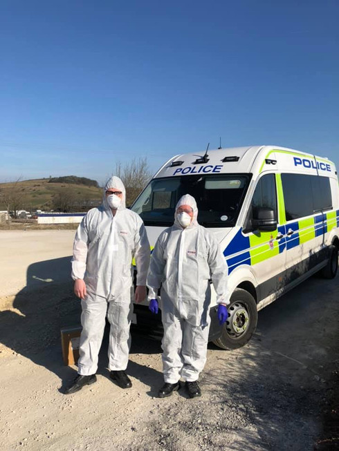 The Buxton’s “under-fire” police force wore white overalls, masks, and blue gloves as they dyed the water.