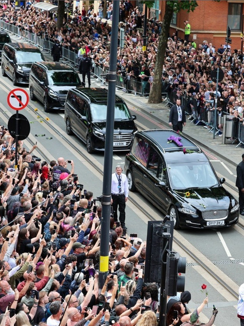 The hearse transporting the singer's coffin, decorated with purple flowers spelling 'Ozzy', was part of a funeral procession led by a live brass band, Bostin' Brass. They played renditions of Black Sabbath songs like Iron Man, while thousands of emotional fans lined the streets, singing along in remembrance of Ozzy.